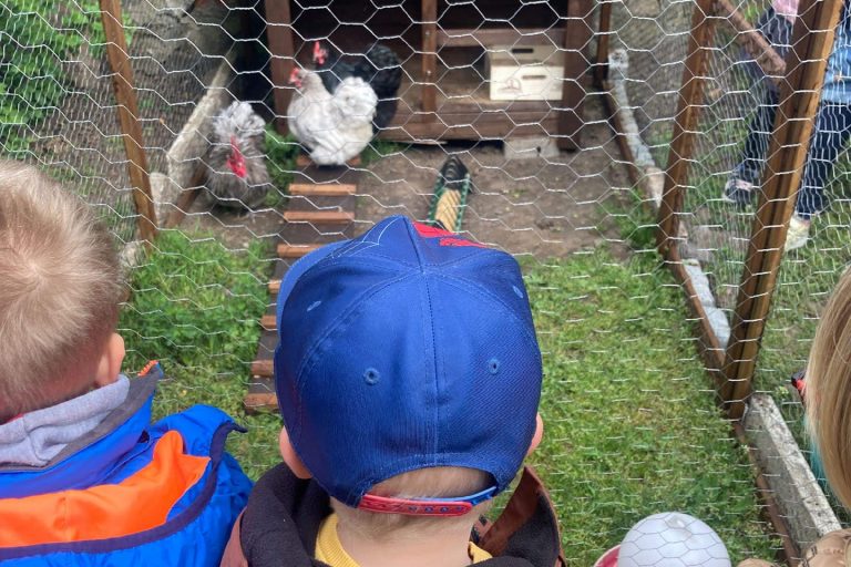 Im Rahmen unseres Hühnerprojekts haben Eltern und ErzieherInnen den Hühnern ein Gehege gebaut, damit es ihnen gut geht und sie für die Zeit bei uns sicher sind.