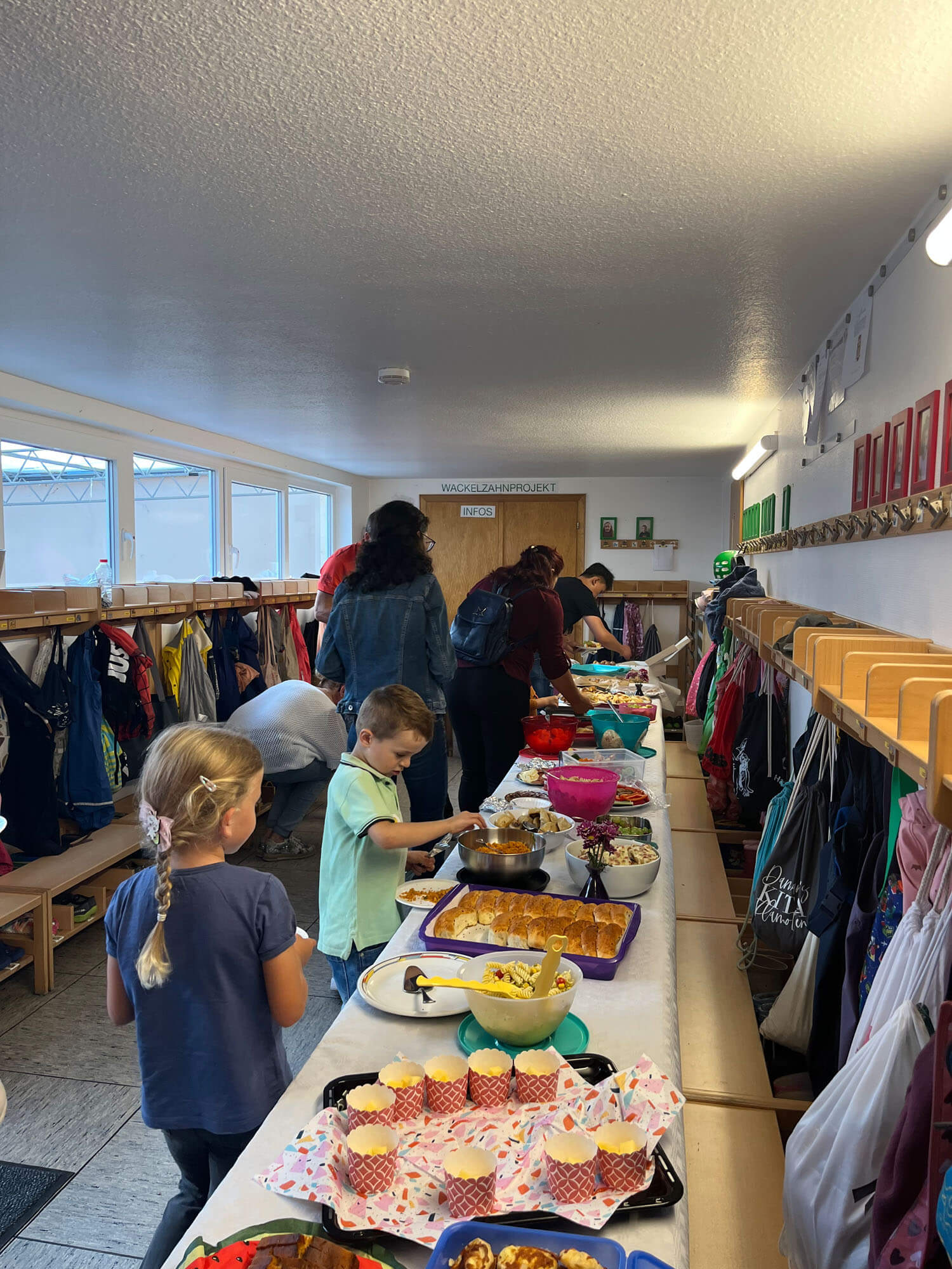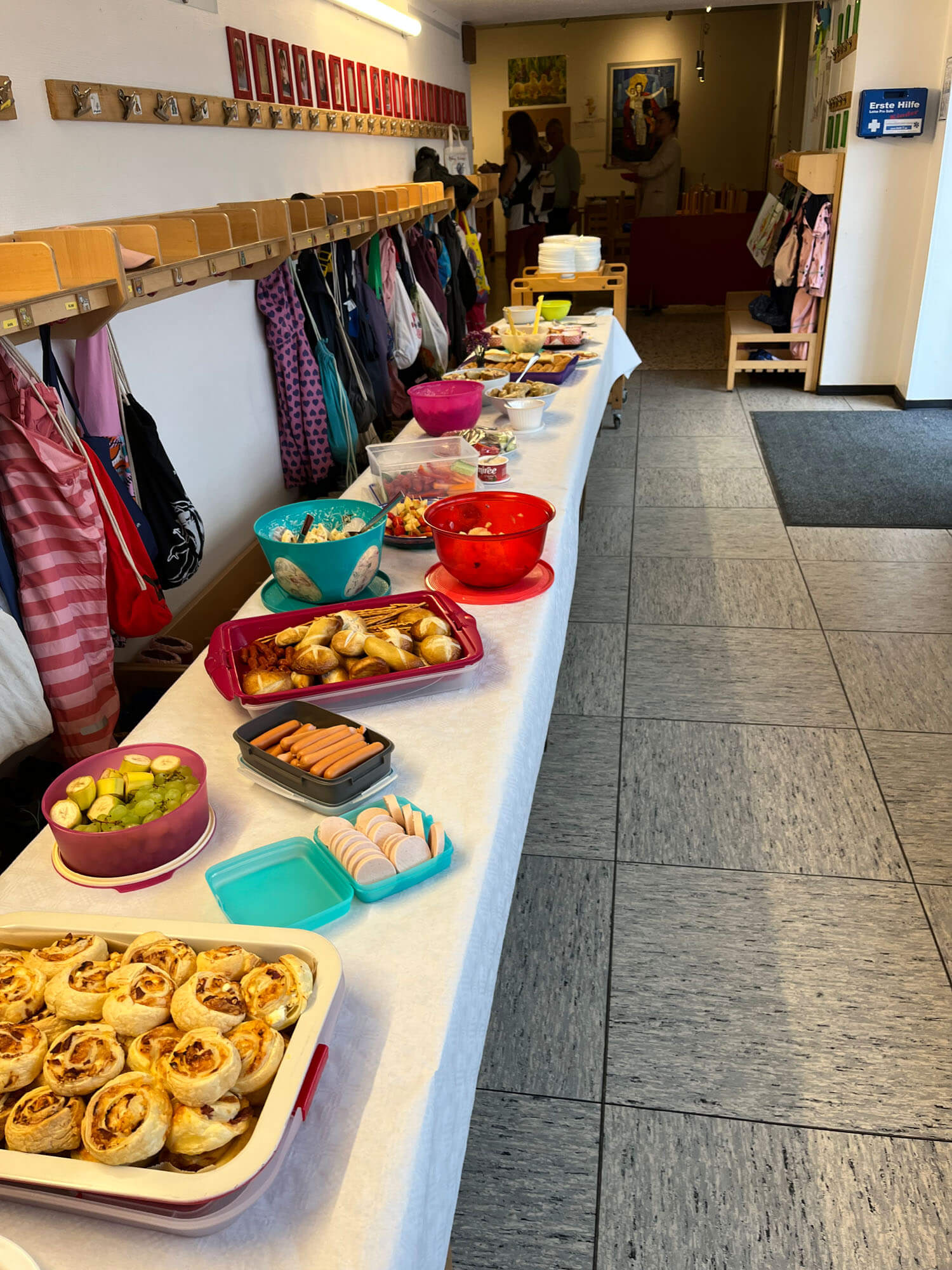 Alle Eltern bringen eine Speise für ein Buffet mit. Besonders schön ist es, wenn die Familien eine Spezialität aus ihrem Heimatland zubereiten.