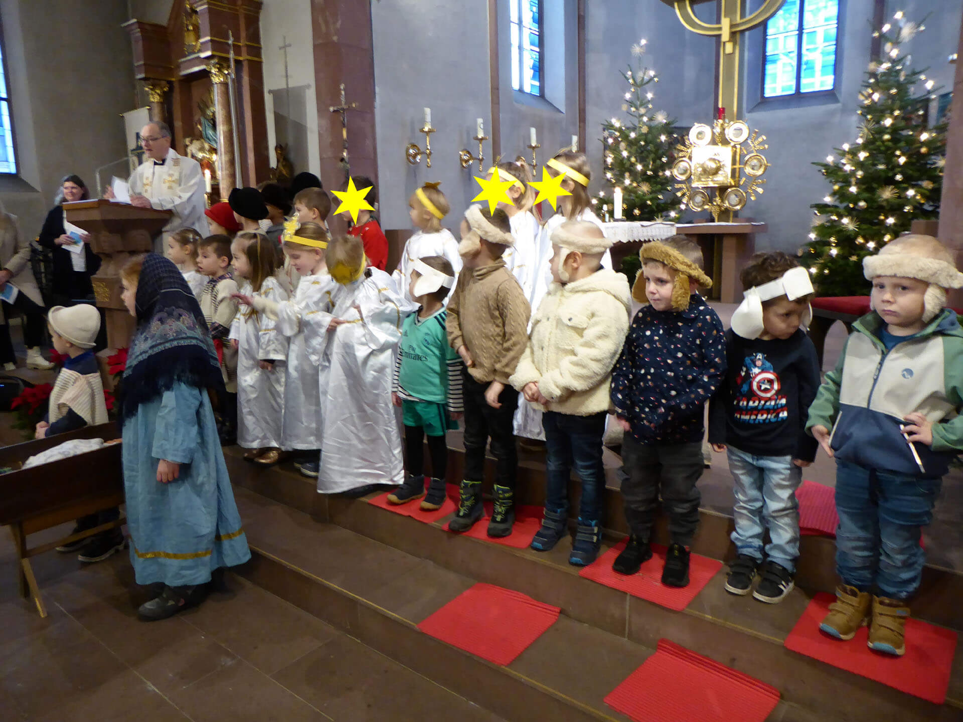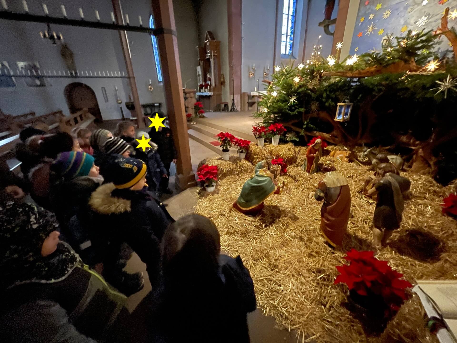 Wir bereiten mit den Kindern einen Wortgottesdienst zu Weihnachten und Feste wie z. B. St. Martin für die ganze Gemeinde vor und führen sie durch. Die Kinder erfahren sich dadurch als ein Teil der Gemeinde. Durch das Besprechen und Einstimmen (z.B. Bastelarbeiten, Theaterstücke einstudieren) auf religiöse Feste und Feiern werden deren Sinn und Tradition an die Kinder weitergegeben.
