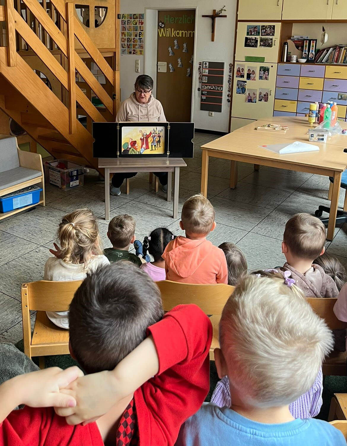 Den Kindern werden unter anderem biblische Geschichten aus Bilderbüchern vorgelesen und mit ihnen religiöse Inhalte erarbeitet.