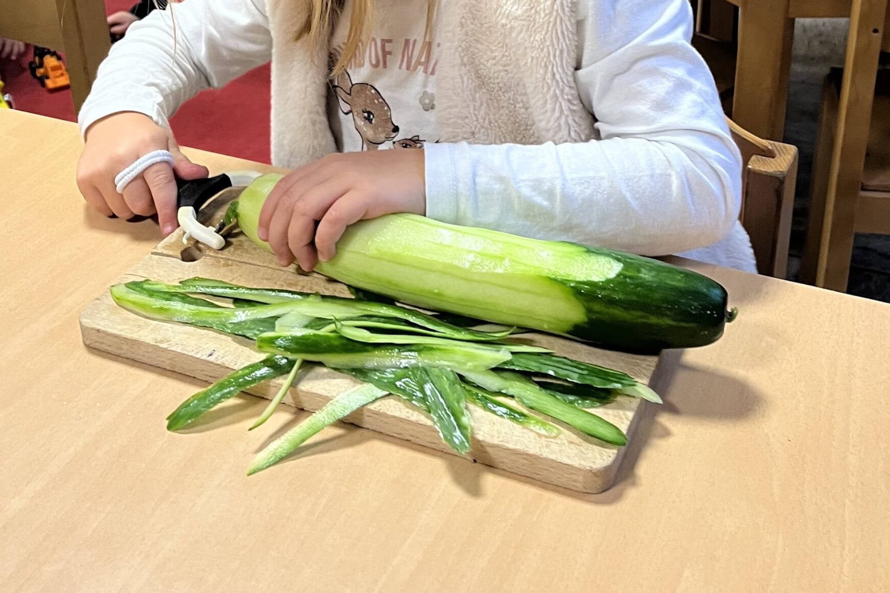 In unserer Einrichtung praktizieren wir den „Zuckerfreien Vormittag“. Die Kinder bringen dazu ein kauaktiv-frisches Frühstück von zu Hause mit. Verboten sind z. B. Schokolade, Milchschnitte, Kuchen und zuckerhaltige Müslis wie Frosties, Honigpops, Fruit Loops und ähnliches. Zu trinken gibt es Wasser und Milch aus dem Kühlschrank. Das Frühstück findet im Café/Flur von 7:00–10:00 Uhr statt. Die Kinder können sich dort in dieser Zeit zum Essen treffen.